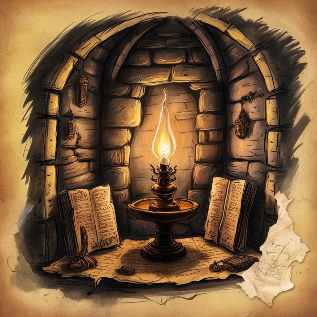 Vida took the fourth position, laying her staff on the floor next to her and adjusting her robe, she faced forward toward the sole source of light. She gazed up at the censer dangling from the ceiling over the lamp. She had practiced this moment in her mind many times. Vida stretched her arm toward the censer and nudged it, ensuring it would swing from north to south and back again. This caused a small bell to sound and the final trial would now begin.